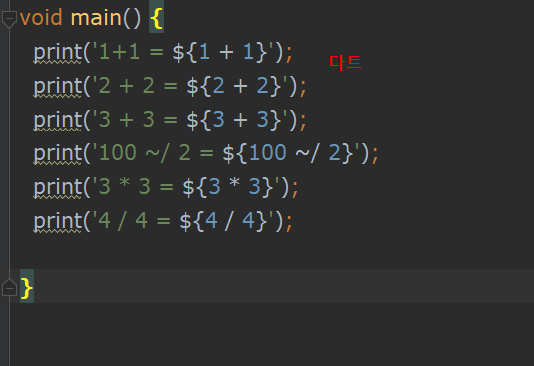 문자열안에서 연산하는 법 (자바와 다트의 차이)